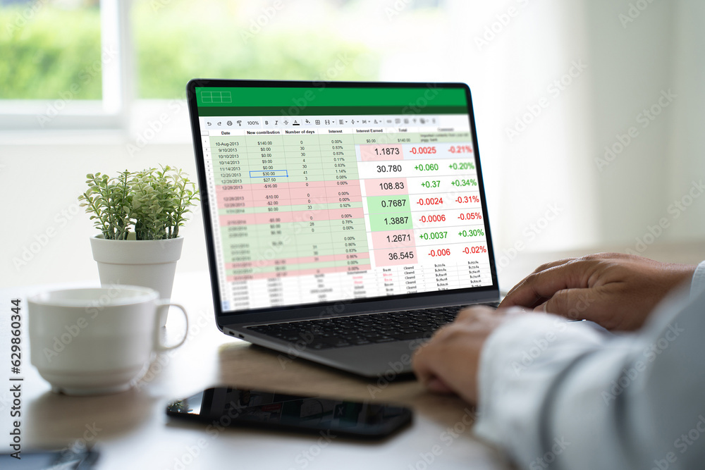 Wall mural businessman working with data and graphs in spreadsheet documents for online analysis microsoft exce - Wall murals Wall mural businessman working with data and graphs in spreadsheet documents for online analysis microsoft exce - Wall murals