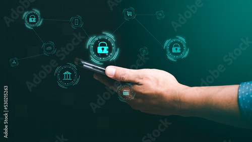 Wall mural : Businessmen use smartphones to connect data through authentication and privacy devices, online secur
