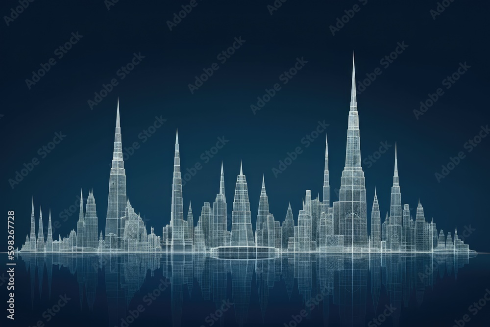 Bustling metropolis skyline with skyscrapers and busy streets below - generative ai generative aiWall mural