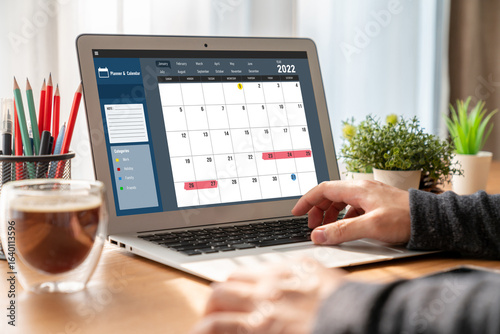 The watermark will not be included on Wall mural.: Calendar on computer software application for modish schedule planning for personal organizer and on