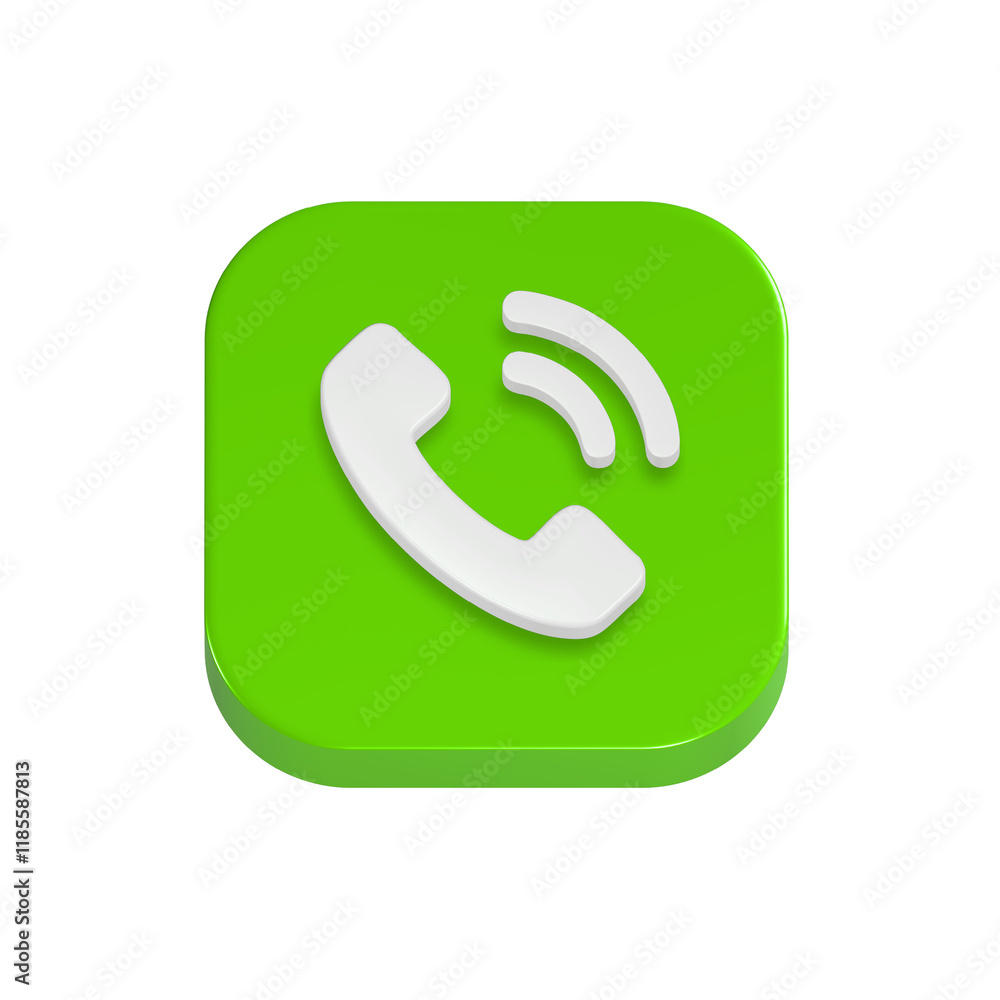 Wall mural call phone icon 3d square green color symbol for app web - Wall murals Wall mural call phone icon 3d square green color symbol for app web - Wall murals