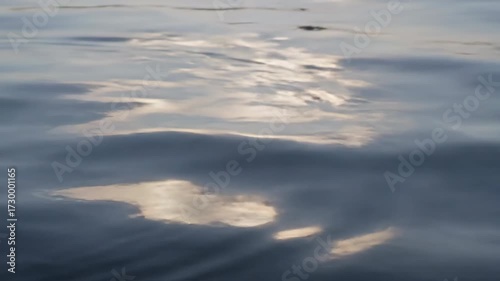 The watermark will not be included on Wall mural.: Calm water surface with subtle ripples and abstract reflections of soft light, captured with a stati