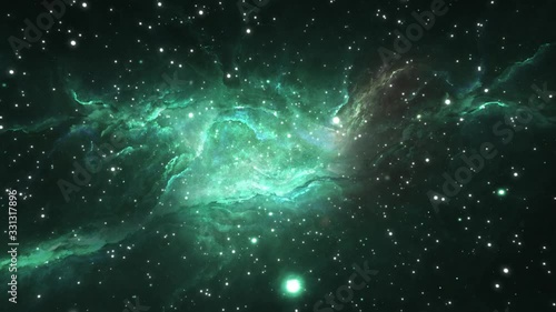 The watermark will not be included on Wall mural.: Camera flying through the clouds and star field in outer space - animation of flying through glowing