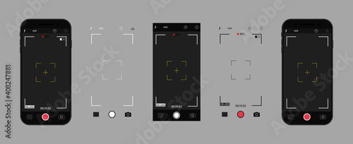 Wall mural : Camera in phone - photo camera on screen of mobile with interface - ui for selfie in smartphone - app f