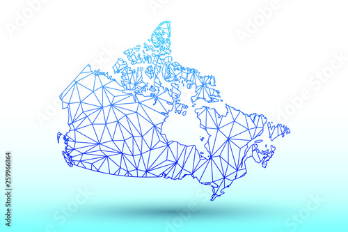 The watermark will not be included on Wall mural.: Canada map vector of blue color geometric connected lines using triangles on light background illust