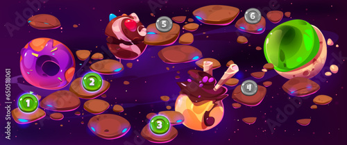 The watermark will not be included on Wall mural.: Candy space game level map ui illustration vector - chocolate background with food planet for fantasy