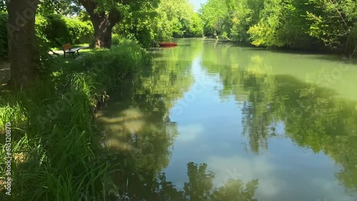 Wall mural canoe and reflection of trees in the water - Wall murals Wall mural canoe and reflection of trees in the water - Wall murals