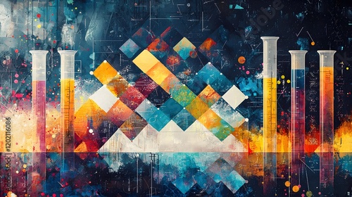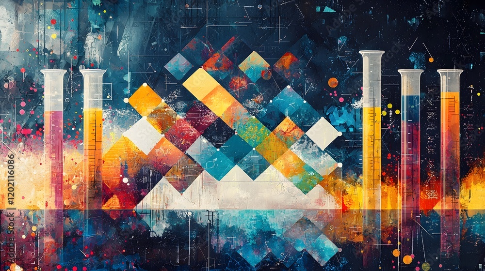 The watermark will not be included on Wall mural.: Captivating abstract laboratory scene combining dna molecular patterns pipettes and vibrant colorful