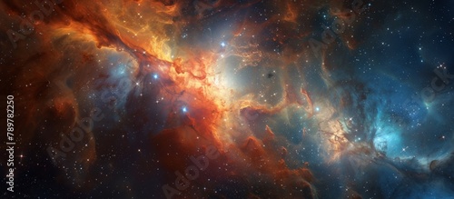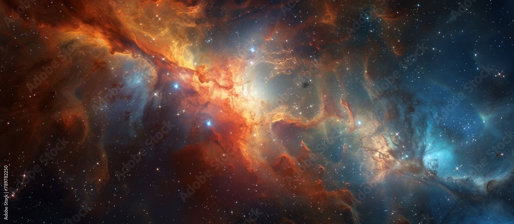 The watermark will not be included on Wall mural.: Captivating close-up view of a beautiful galaxy displaying twinkling stars and a colorful nebula ami