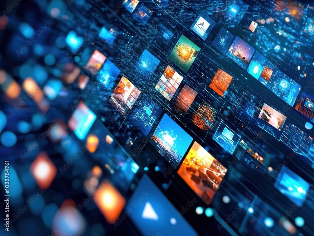 Wall mural captivating digital geometric abstract art with fluid luminous patterns and vibrant prismatic visual - Wall murals Wall mural captivating digital geometric abstract art with fluid luminous patterns and vibrant prismatic visual - Wall murals