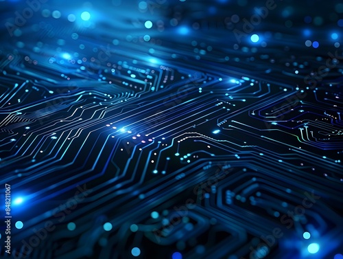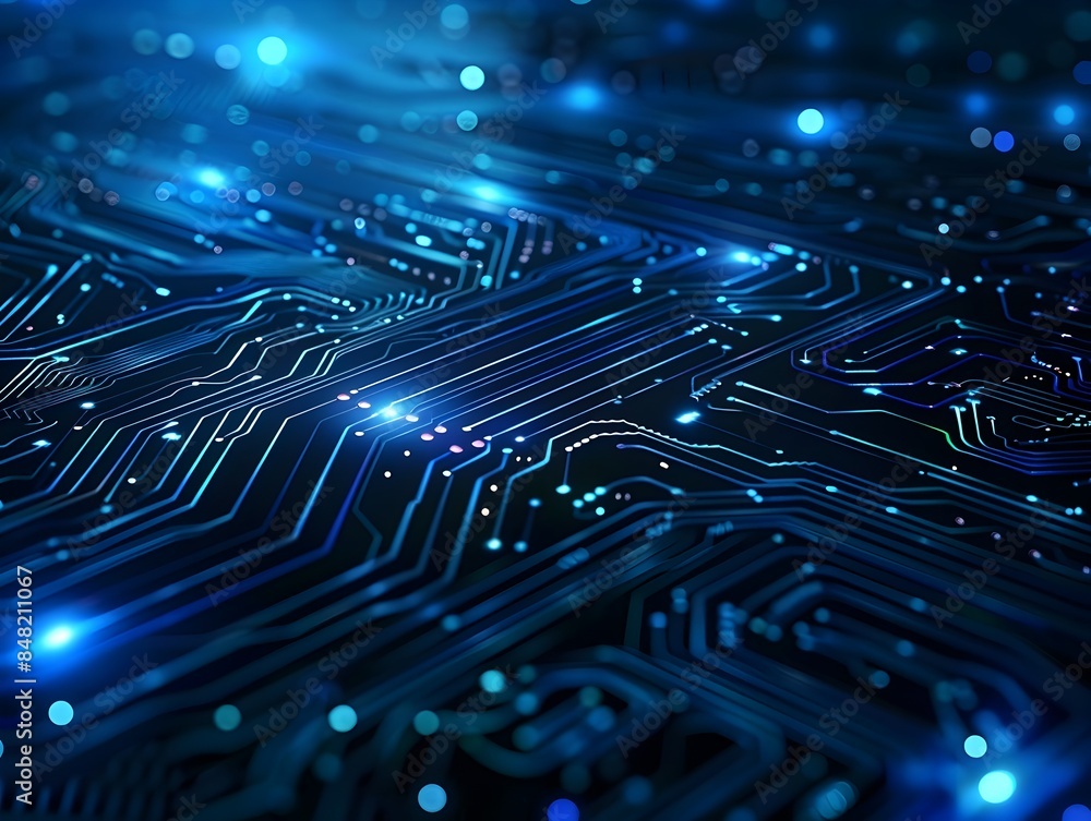Wall mural : Captivating digital technology background with luminous circuit board patterns and glowing effects