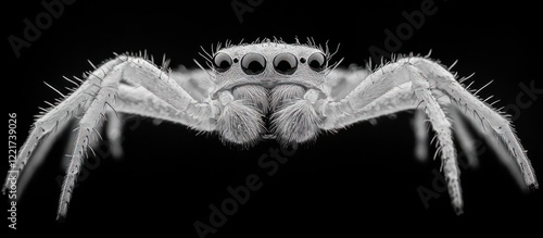 Wall mural captivating monochrome close up image of a fearsome arachnid its piercing eyes and sharp fangs conve - Wall murals Wall mural captivating monochrome close up image of a fearsome arachnid its piercing eyes and sharp fangs conve - Wall murals