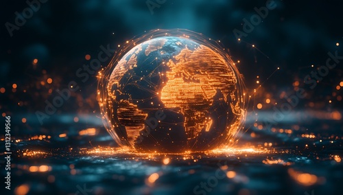 Wall mural captivating visualization of a bright world globe surrounded by energetic data lines and modern tech