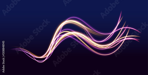 The watermark will not be included on Wall mural.: Car road silhouette with light and motion effect - vector image of colorful light trails with motion