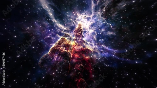 Wall mural carina nebula exploration on deep space. 4k flight into a pillar of gas in the carina nebula, is bat