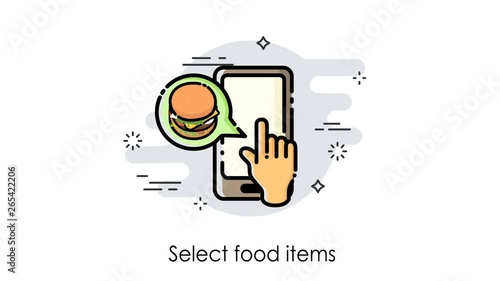 The watermark will not be included on Wall mural.: Cartoon animation - order process and food delivery concept - alpha channel mask - how to order - modern