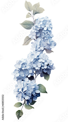 Cascading hydrangea blooms as a frame border, isolated with negative space for layoutsWall mural