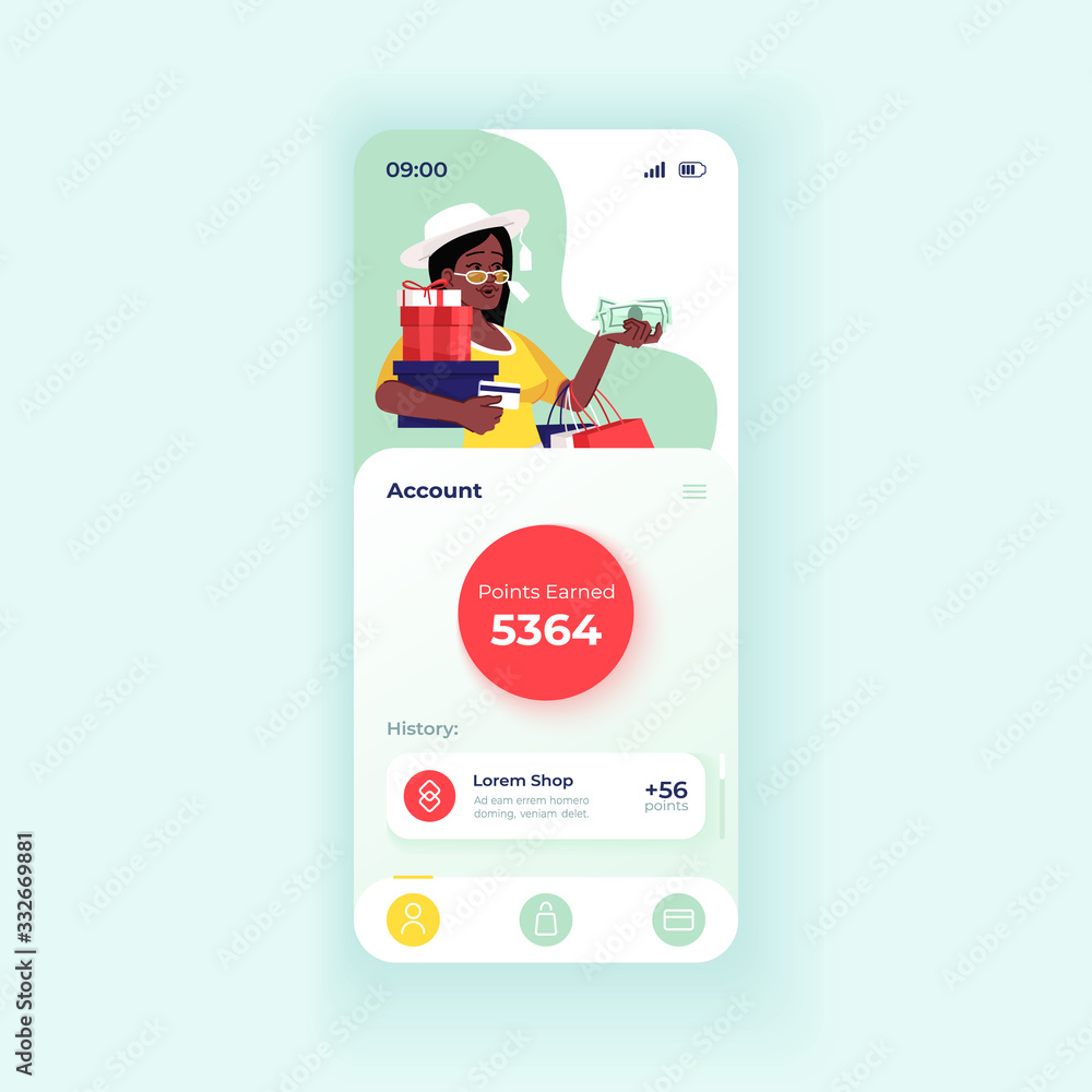 Wall mural cashback application smartphone interface vector template. mobile app page light theme design layout - Wall murals Wall mural cashback application smartphone interface vector template. mobile app page light theme design layout - Wall murals