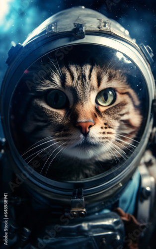 The watermark will not be included on Wall mural.: Cat astronaut in a spacesuit in outer space travels across the expanses of the universe