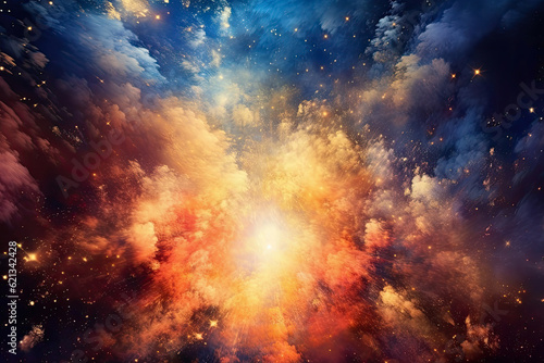 The watermark will not be included on Wall mural.: Celestial collision of stars and galaxies, exploding in a dazzling display of cosmic fireworks