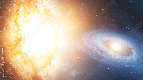 Celestial explosion and spiral galaxy outer space digital artwork cosmic environment high-contrast vWall mural