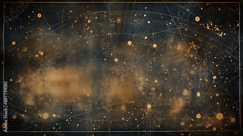 Wall mural celestial map with golden lines and circles on dark background. cosmic chart depicting constellation - Wall murals Wall mural celestial map with golden lines and circles on dark background. cosmic chart depicting constellation - Wall murals