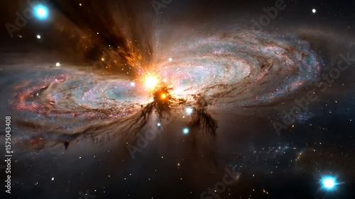 Wall mural : Celestial scene featuring a nebula with swirling cosmic dust and radiant stellar activity - intense c