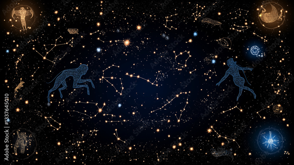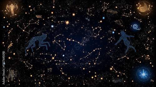 Wall mural celestial tapestry: a mesmerizing depiction of constellations, meticulously mapped across a deep spa - Wall murals Wall mural celestial tapestry: a mesmerizing depiction of constellations, meticulously mapped across a deep spa - Wall murals