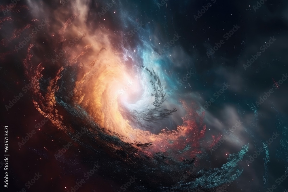 The watermark will not be included on Wall mural.: Celestial vortex, with swirling clouds of gas and dust in galaxy or nebula, created with generative