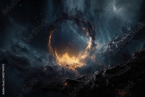 Wall mural celestial vortex, with swirling clouds of gas and dust in galaxy or nebula, created with generative
