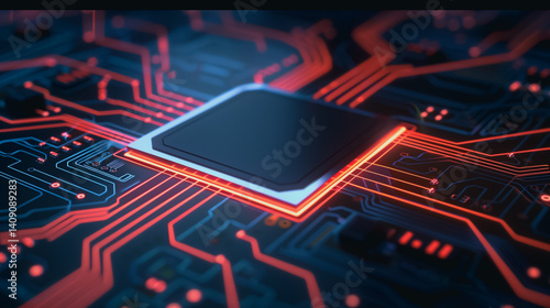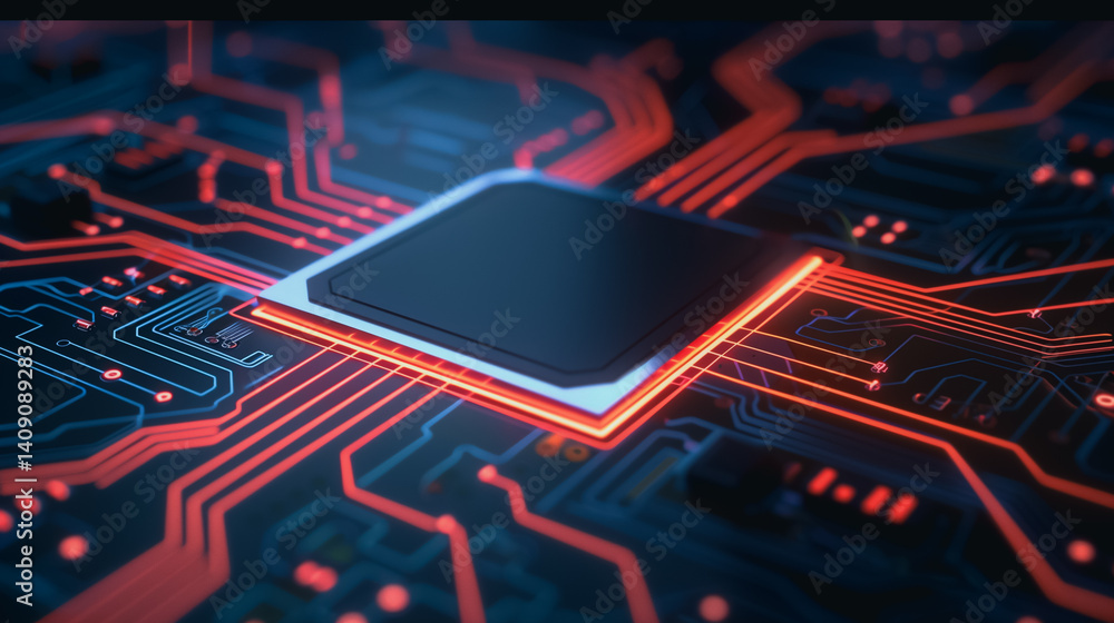 Wall mural central processing unit circuitry: a detailed, close-up shot of a central processing unit on a circu - Wall murals Wall mural central processing unit circuitry: a detailed, close-up shot of a central processing unit on a circu - Wall murals