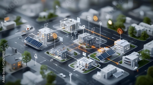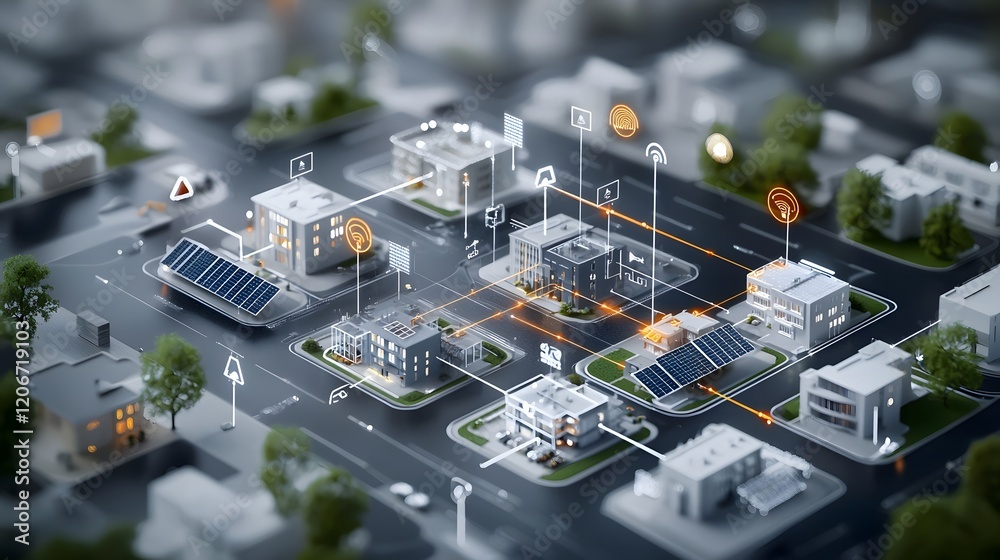 Wall mural centralized grid management system visualized with connections to solar wind and hydro energy source - Wall murals Wall mural centralized grid management system visualized with connections to solar wind and hydro energy source - Wall murals