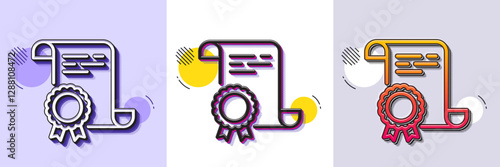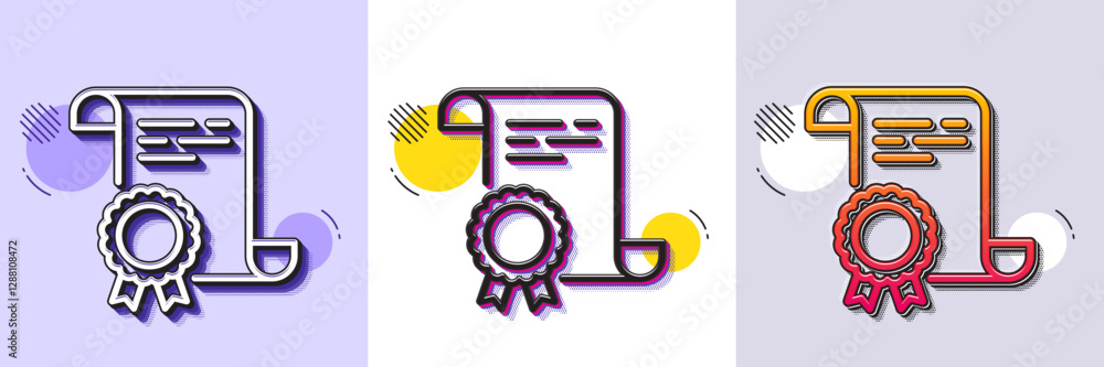 Wall mural certificate line icon. halftone dotted pattern. gradient icon with grain shadow. certified document