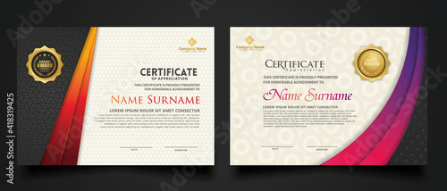 Wall mural : Certificate template with luxury realistic texture pattern and dynamic shapes composition gradient c