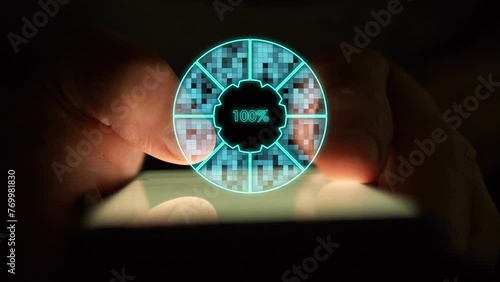 Wall mural cg digital pie chart of turquoise color showing one hundred percent load by sector is divided into s