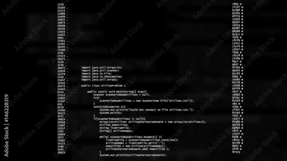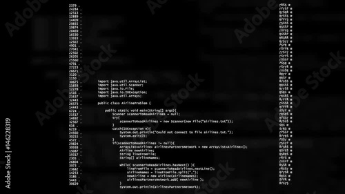 Wall mural : Cgi animation of hacking attempt: binary data and computer code running down screen