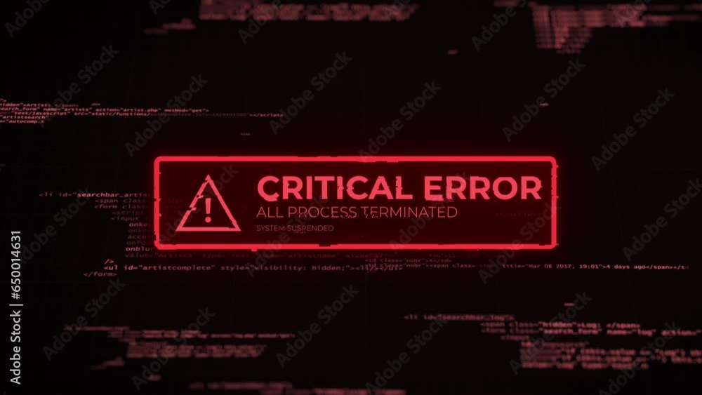 Wall mural cgi video of red critical error message on computer screen with code in background, hacker attack al - Wall murals Wall mural cgi video of red critical error message on computer screen with code in background, hacker attack al - Wall murals
