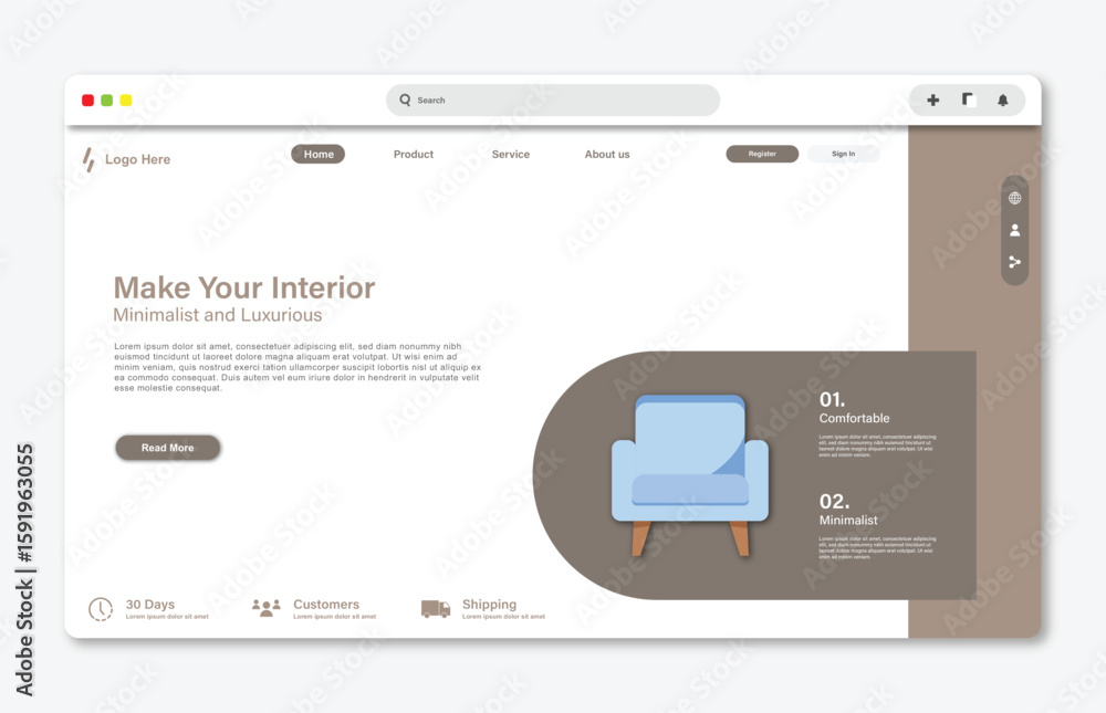 The watermark will not be included on Wall mural.: Chair store website landing page - graphical user interface for website page
