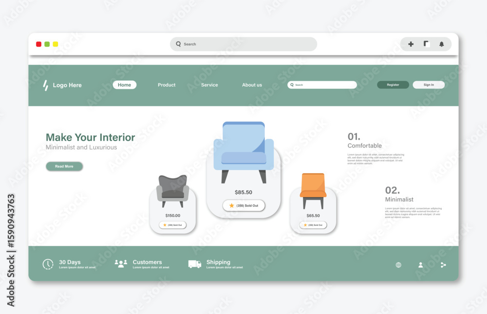 Wall mural : Chair store website landing page - graphical user interface for website page