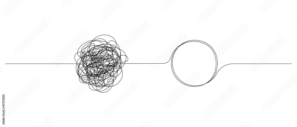 Wall mural : Chaotically tangled line and untied knot in form of circle - the concept of solving problems is easy -