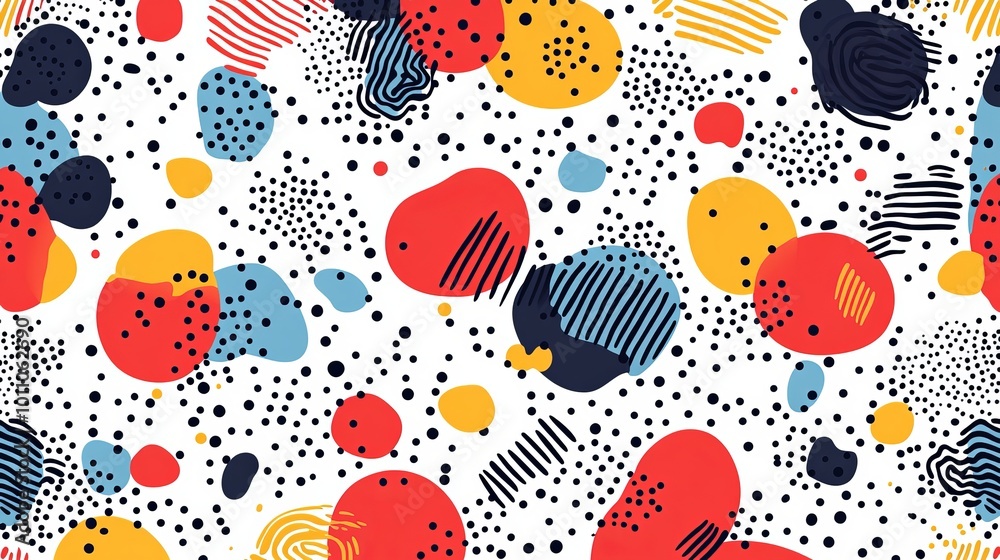 Wall mural : Charming doodle pattern background featuring abstract shapes and dots in a modern vector design, ide