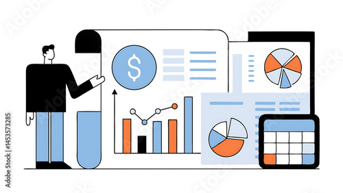 The watermark will not be included on Wall mural.: Chart and graph datum research statistics inforgraphic financial review project planning diagram bus
