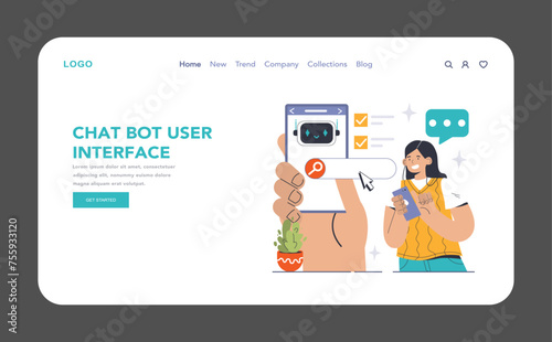 Wall mural chat bot user interface web or landing. woman interacts with digital - Wall murals Wall mural chat bot user interface web or landing. woman interacts with digital - Wall murals