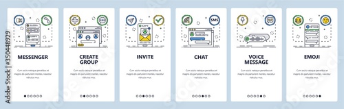 Wall mural : Chat website and mobile app onboarding screens vector template