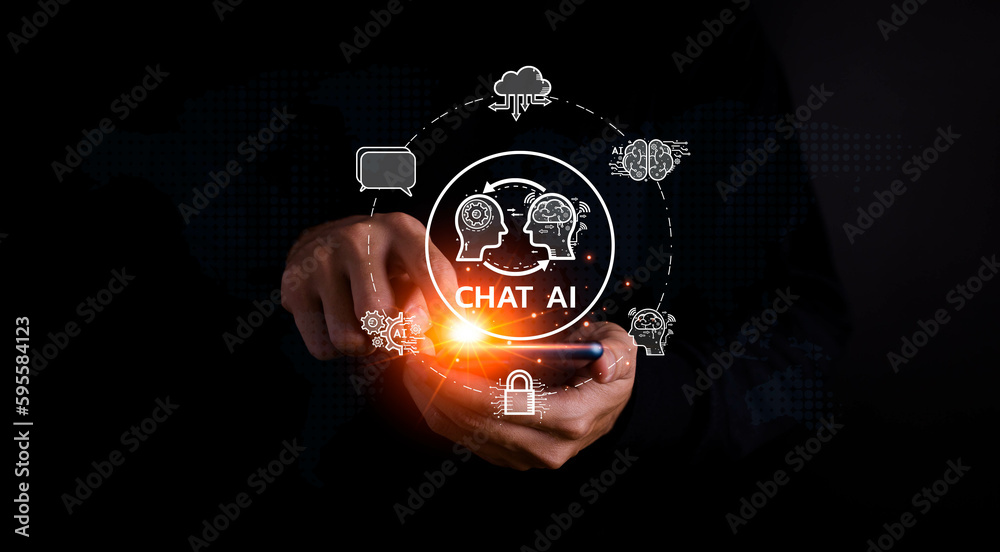 Wall mural chatbot chat with ai, artificial intelligence. man using technology smart robot ai, artificial intel - Wall murals Wall mural chatbot chat with ai, artificial intelligence. man using technology smart robot ai, artificial intel - Wall murals