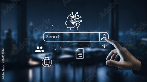 Wall mural : Chatbot with ai (artificial intelligence), search engine, businessman interacting connection to ai,