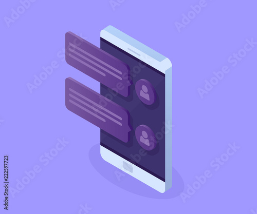 The watermark will not be included on Wall mural.: Chatting and messaging social networking concept - vector 3d isometric illustration -
