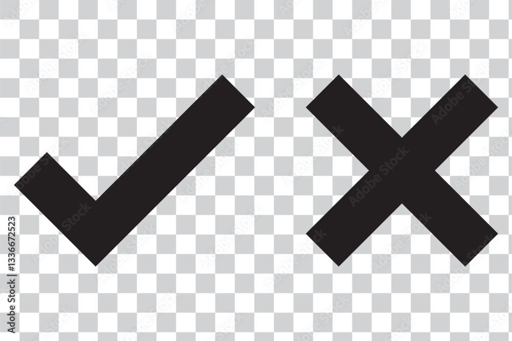 The watermark will not be included on Wall mural.: Check box tick mark icon set black button correct right wrong buttons or yes or no checkmark - eps 10