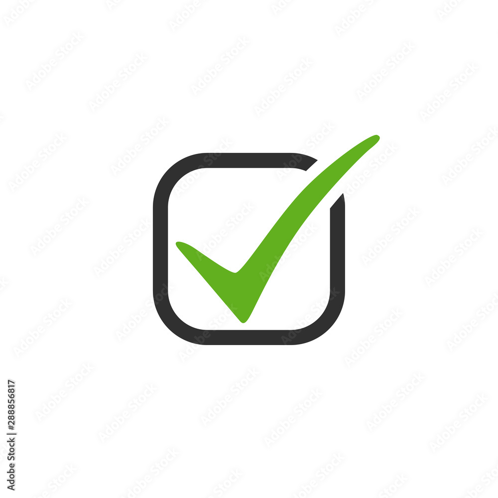 Wall mural : Check mark vector icon - check mark in square - check mark green icon isolated on white background