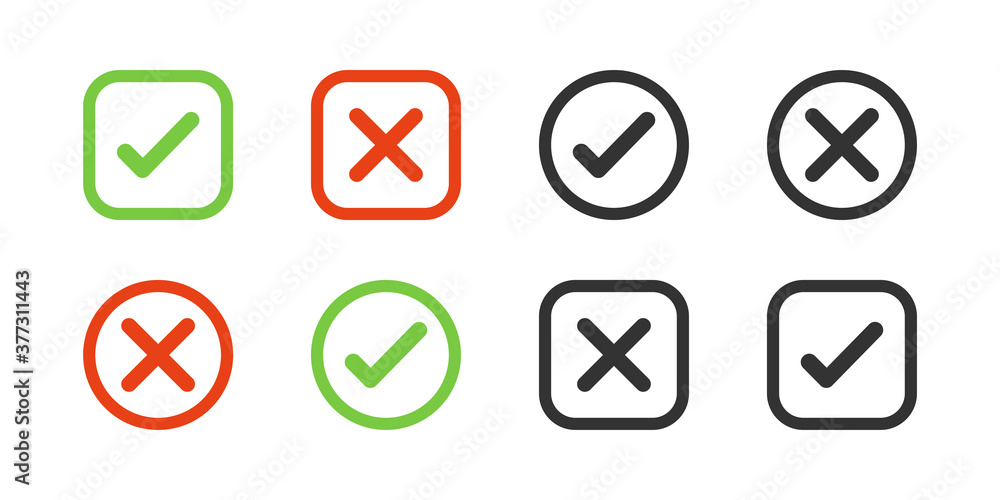 Wall mural check mark with cross mark. vector icons in square and circle. yes or no symbols. check mark and cro - Wall murals Wall mural check mark with cross mark. vector icons in square and circle. yes or no symbols. check mark and cro - Wall murals